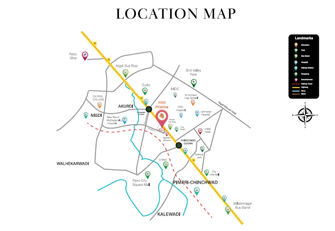 At Akurdi, Pune - By Pristine PropertiesPristine YOO is a premium residential project located in Akurdi, Pune, offering a perfect blend of luxury and modern living. Designed to cater to contemporary lifestyles, the project features elegantly crafted homes with spacious layouts, high-end amenities, and serene surroundings. Residents can enjoy world-class facilities, including landscaped gardens, a clubhouse, swimming pool, fitness center, and children’s play area. The strategic location in Akurdi ensures excellent connectivity to major IT hubs, educational institutions, healthcare centers, and entertainment zones, making it an ideal choice for families and professionals seeking comfort and convenience.